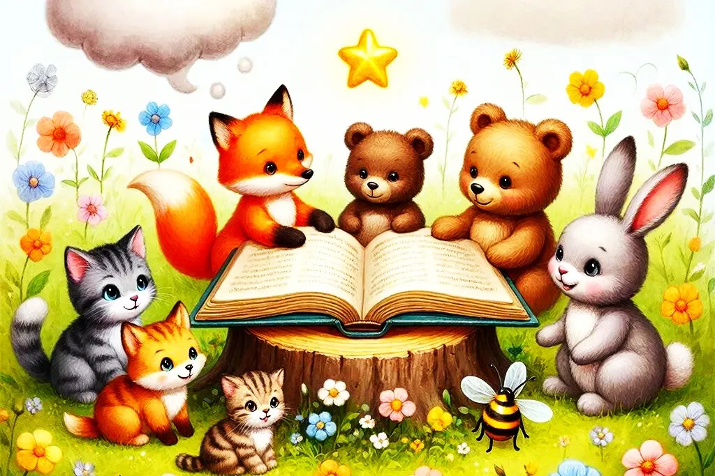В одном уютном лесу, где жили разные звери, жил маленький зайчонок по имени Ушастик. Все зайчата любили прыгать и играть в догонялки, но Ушастик больше всего на свете любил читать. У него была целая коллекция старых книг, которые он находил в заброшенной хижине лесника. Когда Ушастик уставал,он читал и после засыпал, а любимая книга лежала рядом, охраняя его сон.