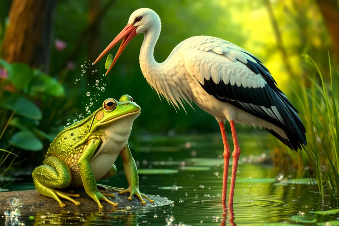 — А вот на что! — рассердился Аист и… проглотил Лягушку.