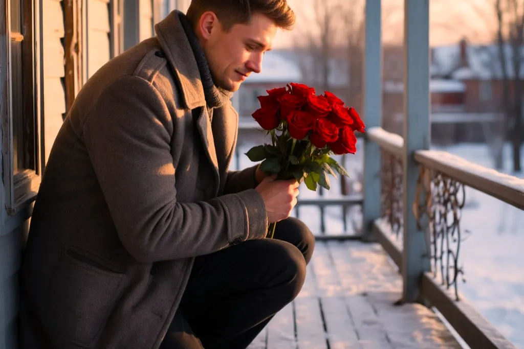 Утром соседи нашли Андрея на крыльце. Он сидел, прижав колени к груди, и улыбался. В руках — букет алых роз, их стебли обвивали его пальцы, как живые. На губах — застывшая фраза: