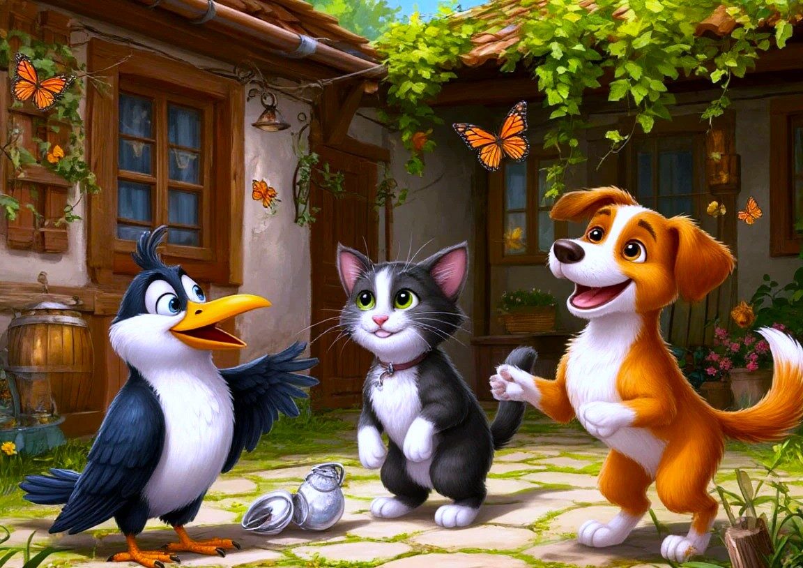 В одном солнечном дворе, где цветы кивали головками, а ветер играл с листьями, жили три необычных друга: