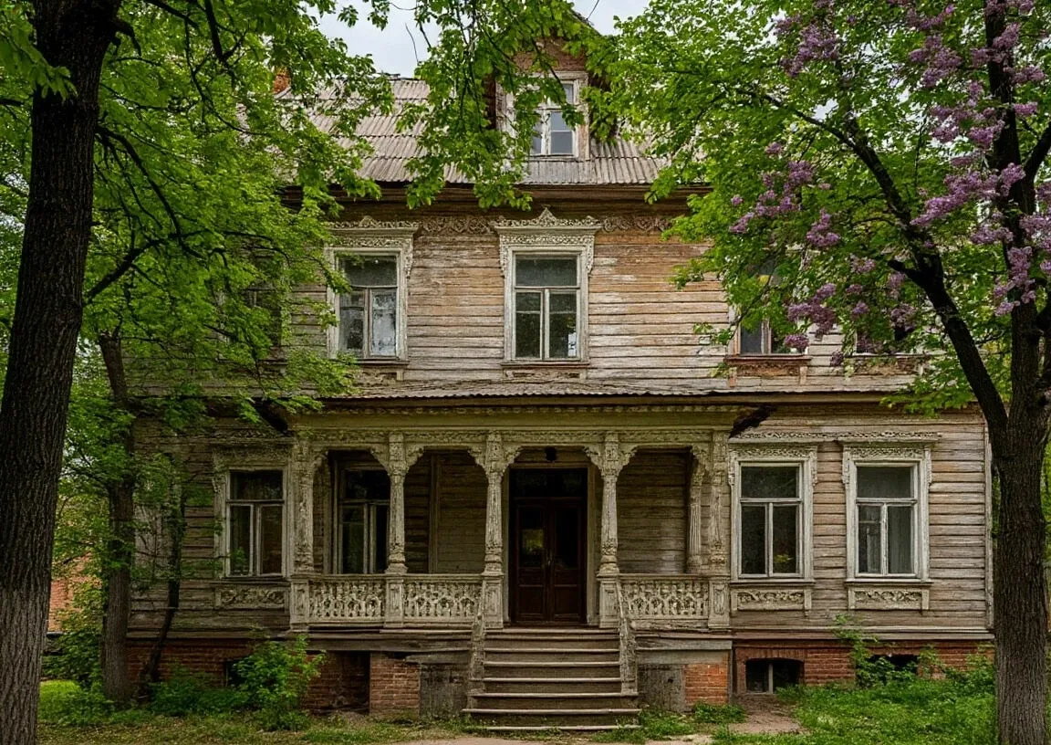 Мне тогда было лет семь, и дом показался мне огромным и загадочным. Он не был похож на современные здания с их прямыми линиями и стеклянными фасадами. Он был настоящим — с резными наличниками, скрипучими ступенями крыльца и тяжёлой дубовой дверью, украшенной потемневшей латунной ручкой.