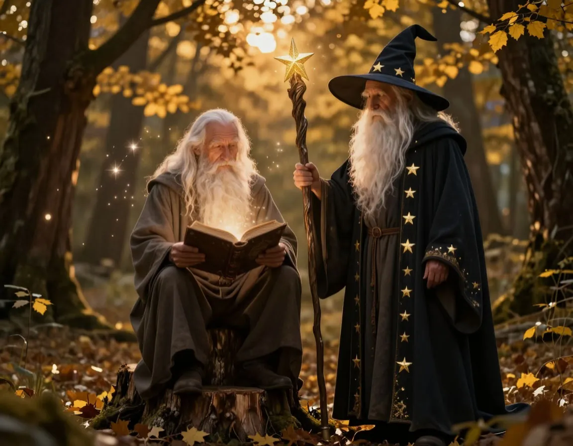 В одном далёком королевстве, где горы касались облаков, а реки пели волшебные песни, жили два друга: волшебник по имени Элиан и мудрец по имени Теодор.
