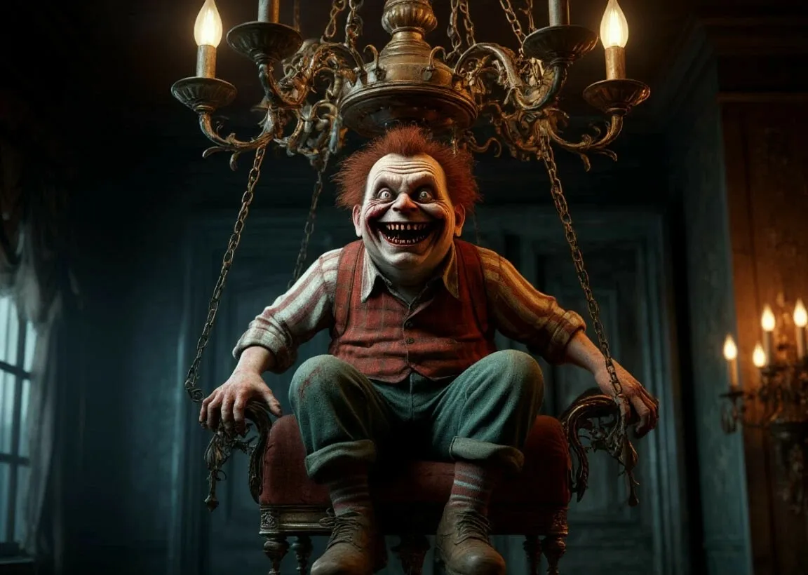 Он сидел на люстре, раскачиваясь, и ухмылялся.
