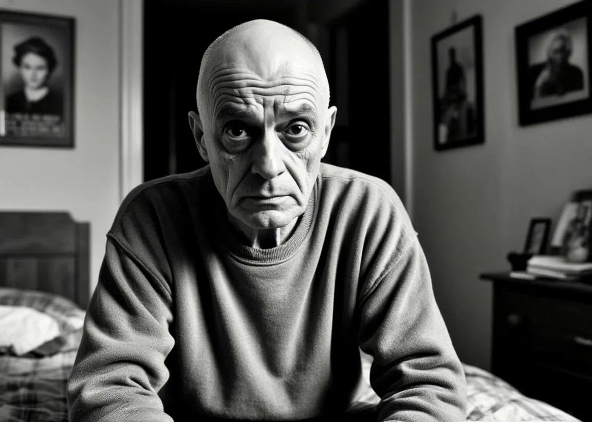 Мужчина лет пятидесяти, лысый, как коленка, в домашней кофте с обтрёпанными манжетами. Лицо морщинистое, но не старое — просто измождённое, будто он не спал несколько недель. Глаза — тёмные, почти чёрные — никогда не смотрели прямо на меня. Они скользили по моему лицу, будто сканируя, а потом сразу отворачивались.