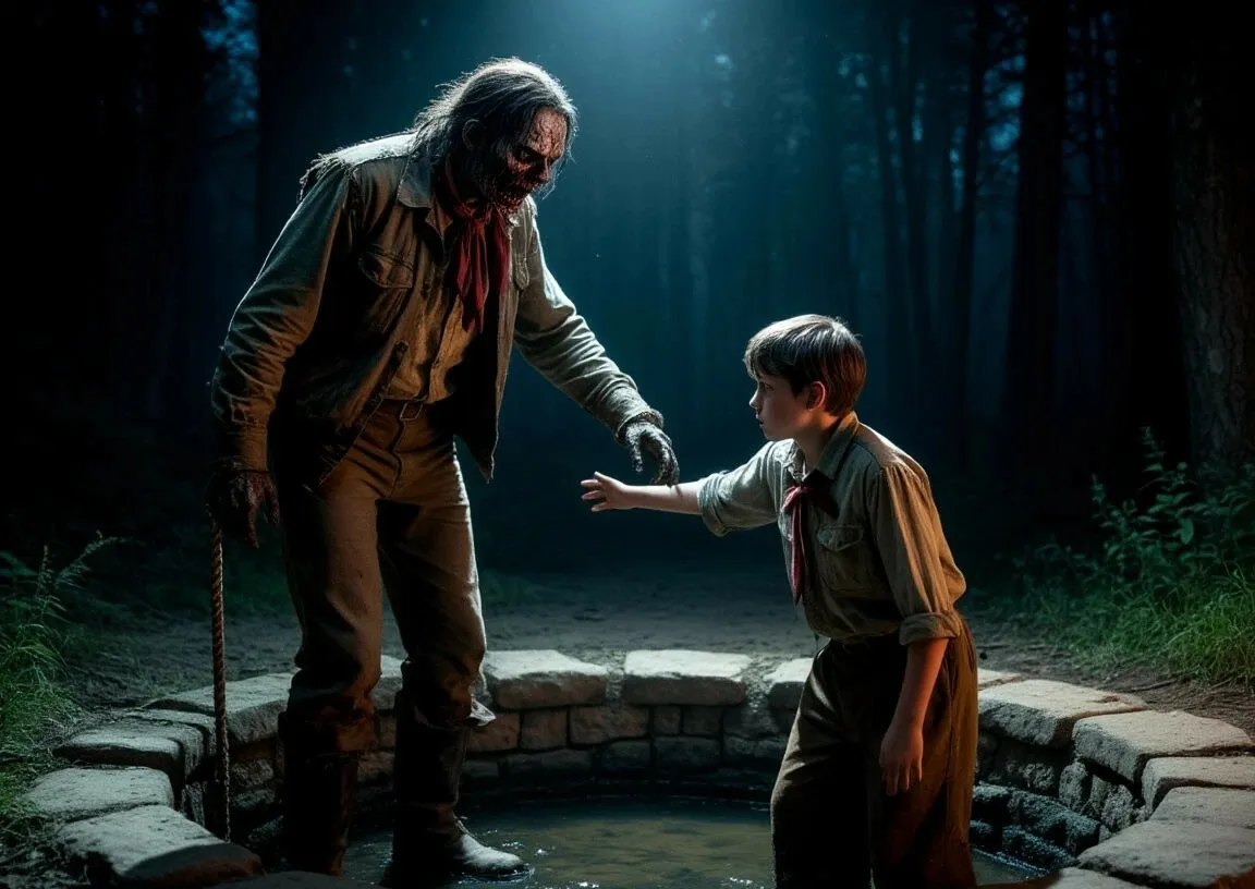 Саша схватил брата за руку и потянул назад. В этот момент из колодца вырвалась тень — высокая, сгорбленная фигура в пионерской форме. Её лицо было искажено, а галстук болтался на шее, как петля.
