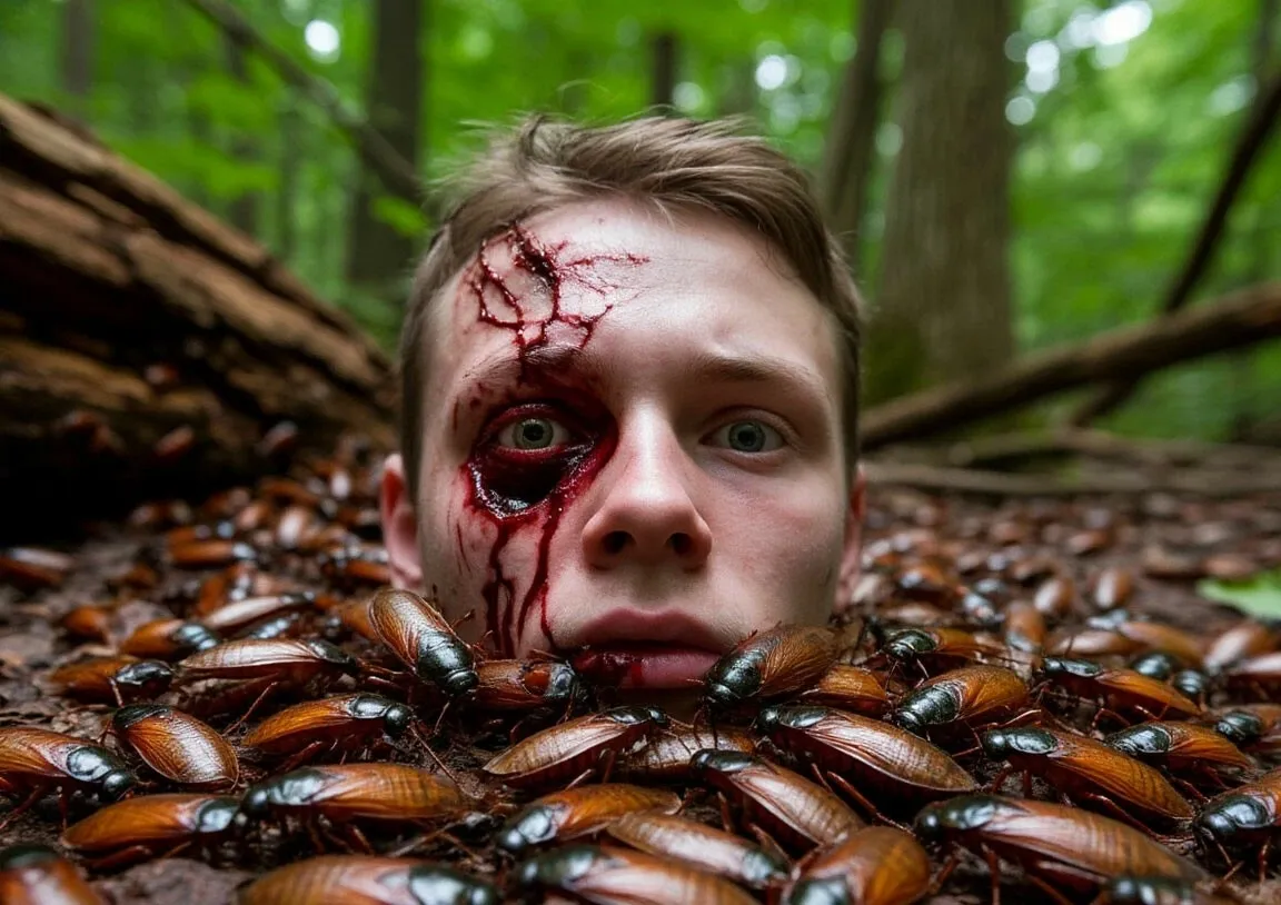 Его нашли через два дня в лесу за городом. Глаза были вырваны, а вокруг — сотни мёртвых тараканов.