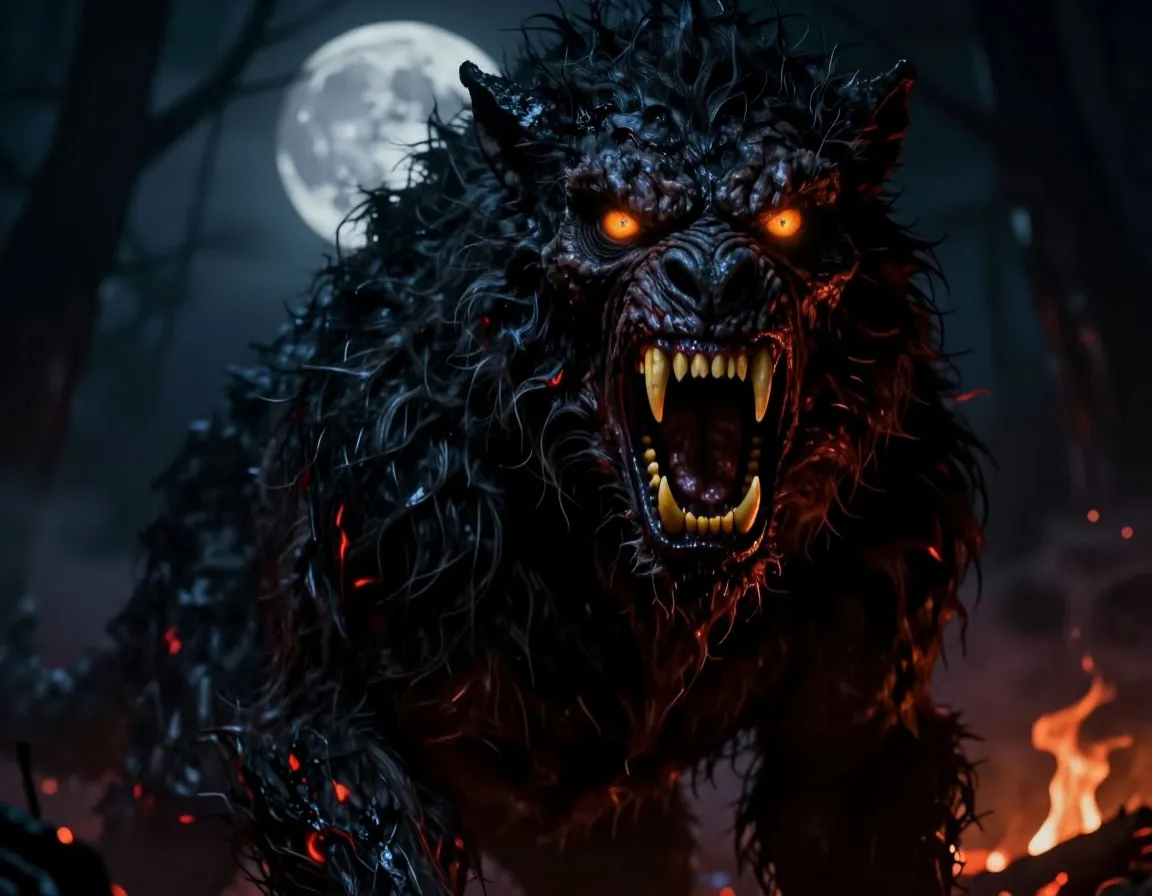 Высокое, сгорбленное. Покрытое свалявшейся шерстью. С глазами, горящими в темноте, как угли. И с пастью, полной острых, жёлтых зубов.