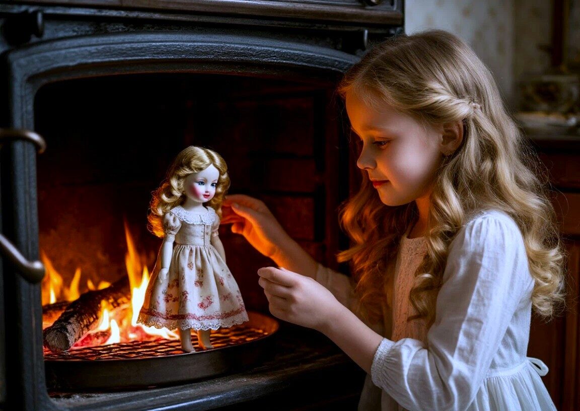 Лида, забыв про страх, взяла куклу. Женщина же, едва вручив подарок, шагнула назад — не в проём печи, а прямо сквозь кирпичи, словно их и не было.