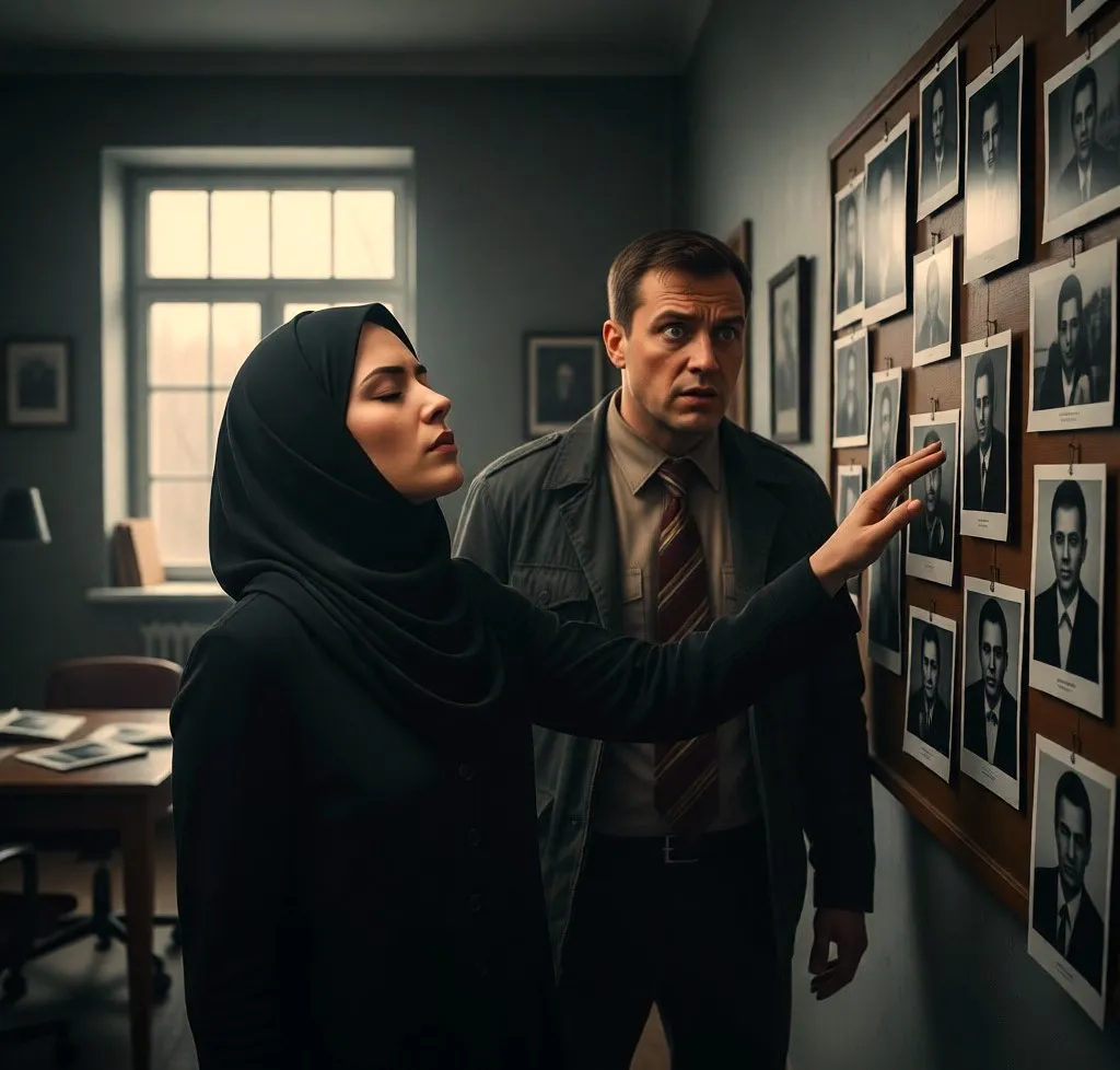 На следующий день в отдел пришла женщина в чёрном платке. Она закрыла глаза, провела руками над фотографиями жертв и вдруг резко открыла глаза: