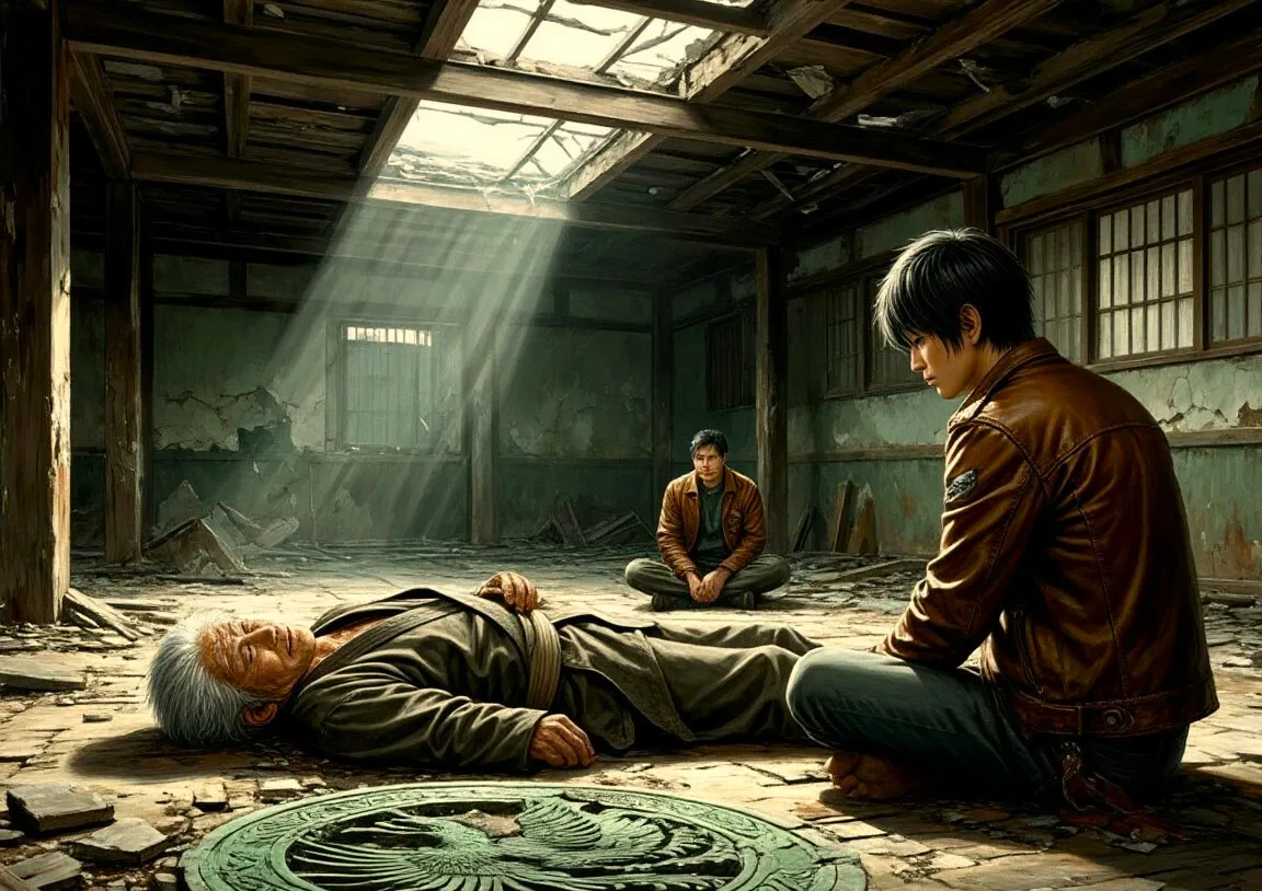 В центре этого хаоса, в луче холодного света, пробивающегося сквозь пролом в крыше, лежал пожилой мужчина. Его седые волосы, когда‑то аккуратно зачёсанные назад, теперь разметались по грязному полу. Виктор Андреевич Романов, мастер айкидо и наставник целого поколения кировских спортсменов, едва дышал. Его кимоно, некогда белоснежное, пропиталось кровью.