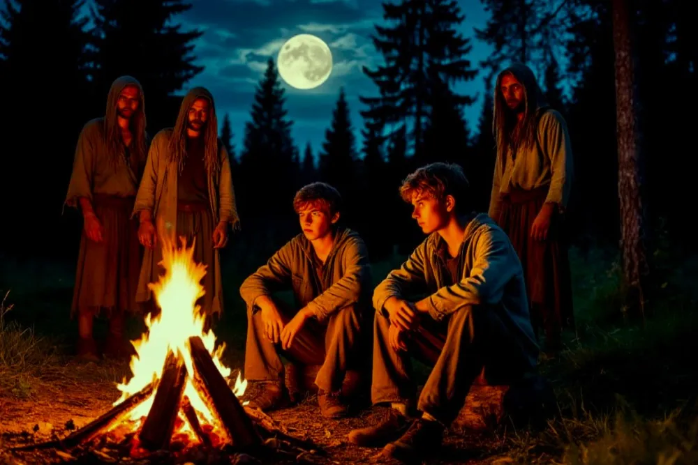 Он не ответил. Вместо этого он поднял руку и указал пальцем куда-то в сторону леса, откуда он вышел. Я снова направил туда фонарик. И тогда я увидел. Среди деревьев, в мерцающем свете фонаря, стояли они. Высокие, тонкие фигуры, окутанные тьмой. Их глаза светились слабым, неземным светом. Они не двигались, но от них исходила какая-то невыносимая аура страха.