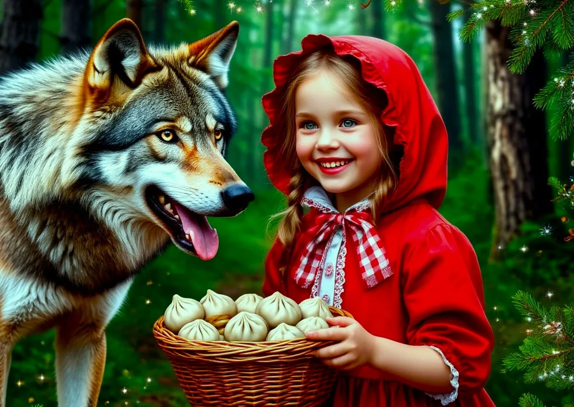 -Это я, внучка ваша, Красная Шапочка, -отвечает Волк, – я к вам в гости пришла, пирожок принесла и горшочек масла.