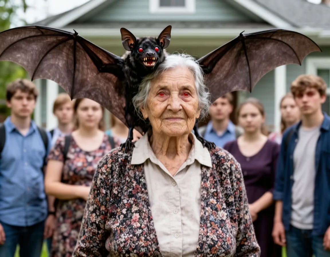 На снимке была изображена группа людей, стоящих перед этим же домом. В центре — молодая женщина, очень похожая на бабушку Галю, только намного моложе. Но что поразило Диму — на плече у женщины сидела огромная летучая мышь. Не просто мышь, а какая‑то неестественно крупная, с красными глазами и острыми зубами.