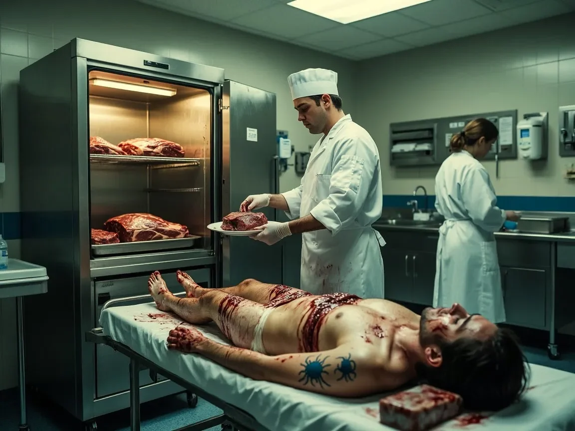 «Мясная база» — это неопознанные трупы, бездомные, одиночки, которых никто не ищет. Их не хоронят — используют «рационально». Лучшие органы — богатым клиентам за огромные деньги. Остальное… идёт на питание.