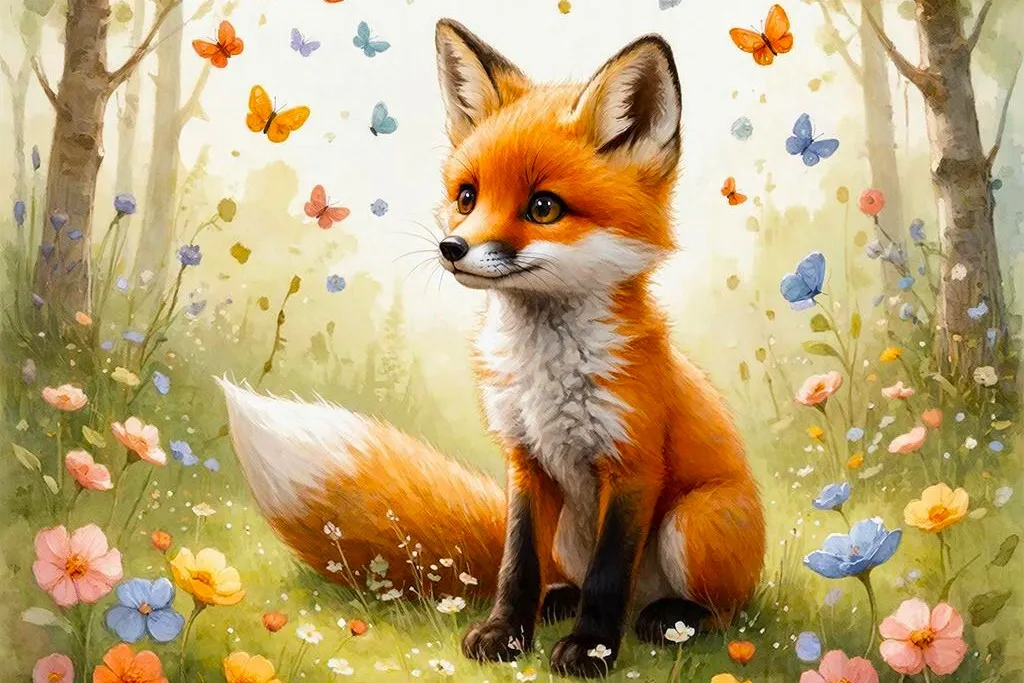 В густом лесу, где деревья шептались с ветром, жил маленький лисёнок по имени Рыжик. Он был очень шустрым и любил играть в прятки со своими братьями и сёстрами. Однажды, во время особенно весёлой игры, Рыжик заметил, что с его любимого жилета пропала самая красивая пуговица – круглая, блестящая, как капелька росы.