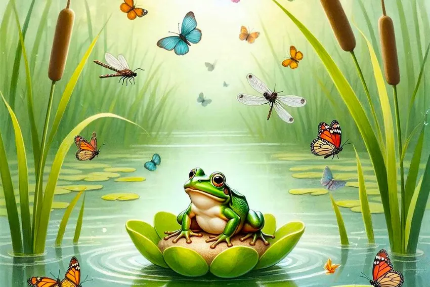 В тихом пруду, где квакали лягушки, жил маленький лягушонок по имени Квакуша. Он был очень мечтательным и любил смотреть на птиц, которые парили в небе. «Как же здорово, наверное, летать!» – думал Квакуша.