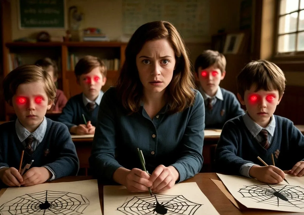 Эмма, школьная учительница, начинает замечать странные вещи. Сначала это мелочи: её ученики рисуют одинаковые символы — круги с пересекающимися линиями внутри, похожие на паутину. Потом она ловит себя на мысли, что дети стали слишком тихими, почти бесшумными. А в сумерках их глаза отливают красным — будто тлеющие угли.