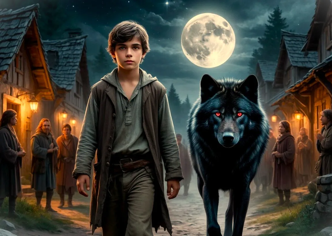 Когда Элиан вошёл в деревню, с ним рядом шёл огромный чёрный волк, но теперь его глаза светились не красным, а мягким серебристым светом. Люди замерли в изумлении, но Звезда в руке юноши излучала такое спокойствие, что страх сменился восхищением.