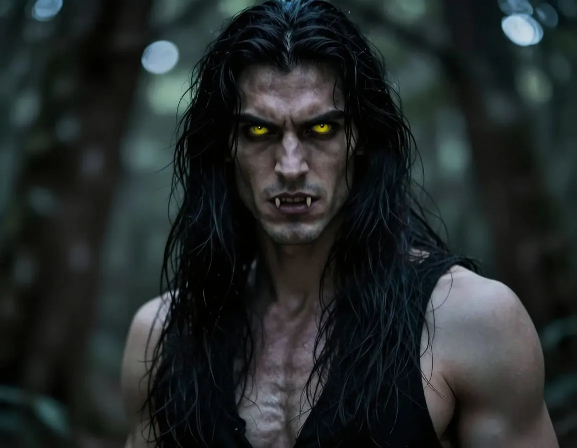 Между деревьями стоял человек. Высокий, широкоплечий, с длинными тёмными волосами. Но что‑то в его облике было неправильным. Слишком острые черты лица, слишком пристальный взгляд. Его глаза на мгновение сверкнули жёлтым, прежде чем он опустил голову.