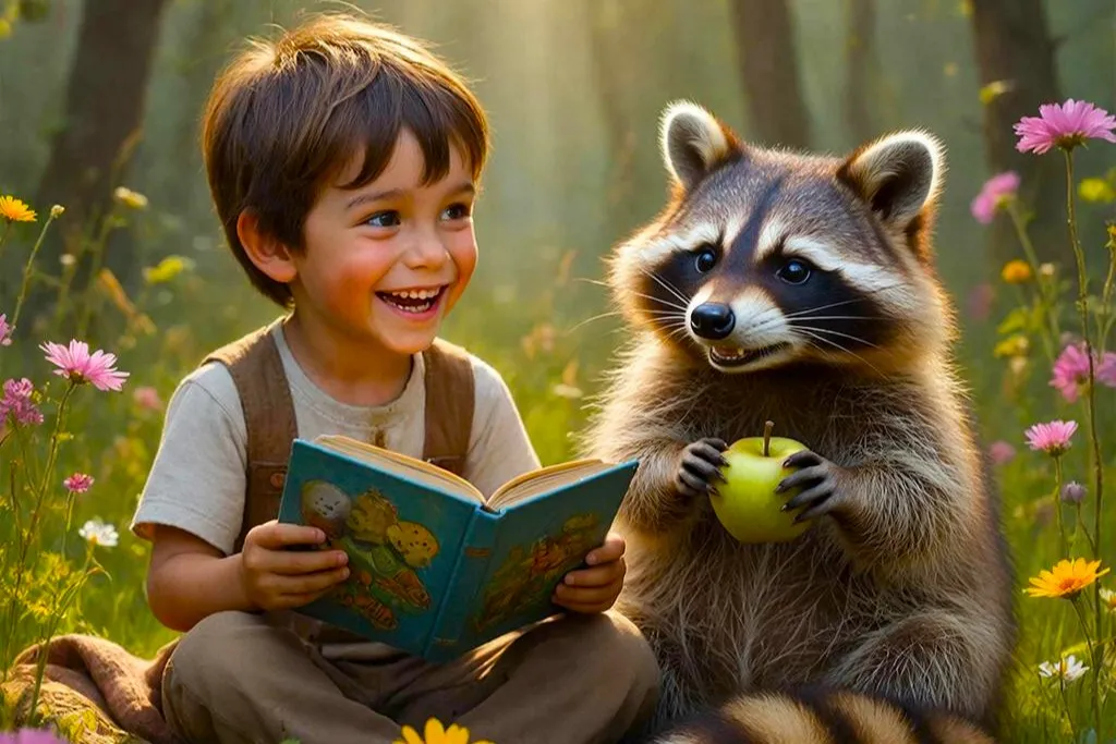 В маленьком городке, затерянном среди зелёных холмов и цветущих луг, жил юный Эдвард. Он был мечтателем, с глазами, полными звезд, и головой, полной идей. Каждый день, после уроков, он проводил время в старом антикварном магазинчике, где всё дышало тайной. Его лучшим другом был Румби Коко — весёлый и немного неуклюжий енот, который всегда находил способ заставить Эдварда смеяться.