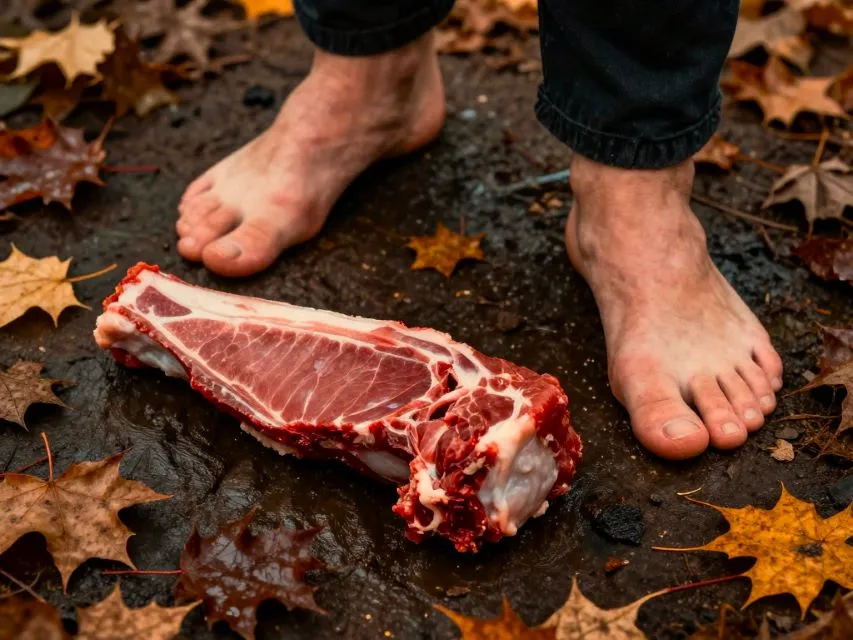 А однажды, глубокой осенью, он нашёл у своего порога кусок мяса. Свежего. И рядом — след босой ноги, слишком большой для человека.