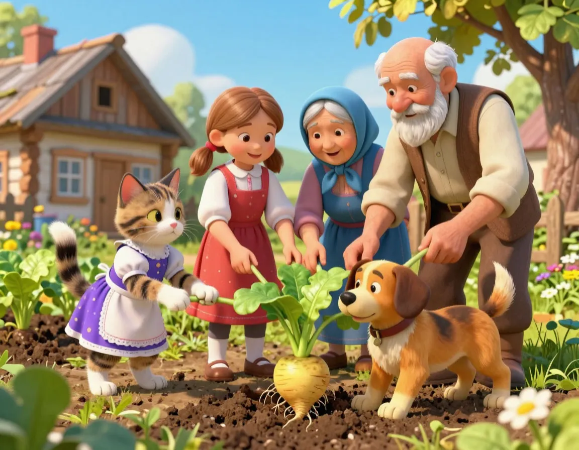 Кликнула кошка Машка мышку. Мышка за Машку, Машка за Жучку, Жучка за внучку, внучка за бабку, бабка за дедку, дедка за репку — тянут‑потянут… и вытащили репку!