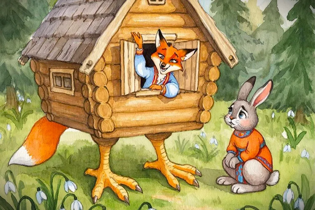 Жили-были лиса да заяц. У лисы была избенка ледяная, у зайца — лубяная.