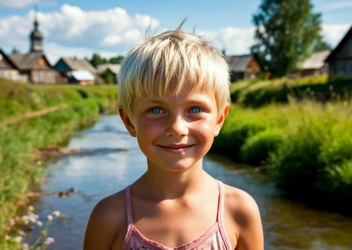 Лето в деревне всегда пахло мокрой землёй, полынью и речной прохладой. Для десятилетней Ани это было самое счастливое время года. Её короткие волосы, выцветшие на солнце, торчали в разные стороны, а большие синие глаза — точь-в-точь как у папы — сияли от восторга. Она обожала просыпаться рано, когда роса ещё лежала на траве тяжёлыми каплями, и бежать к реке.