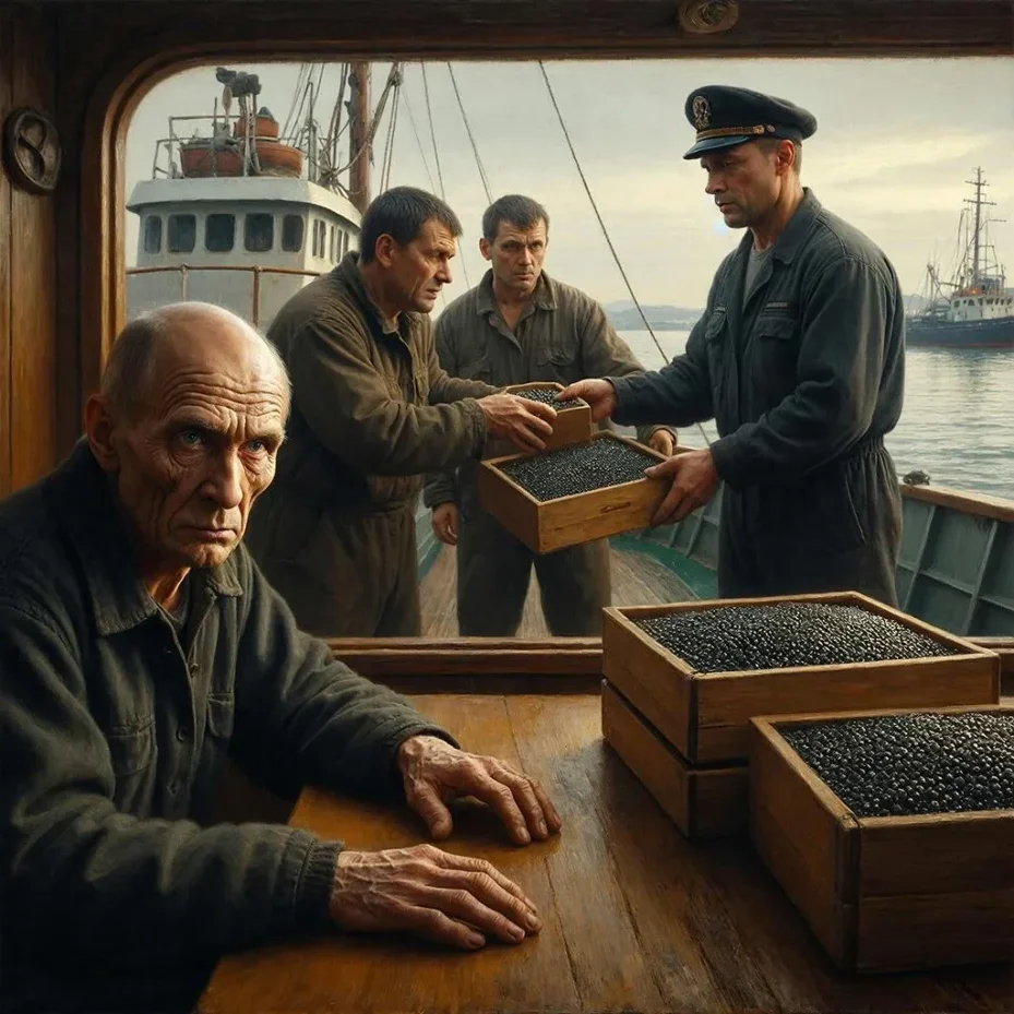 Мы вернулись из очередного рейса раньше срока. На берег снова сгружали ящики. Те самые. Чёрная икра высшего сорта, упакованная в вакуумные пакеты по килограмму. Я видел маркировку мельком, когда один из пакетов порвался под крышкой. Золото на чёрном фоне.