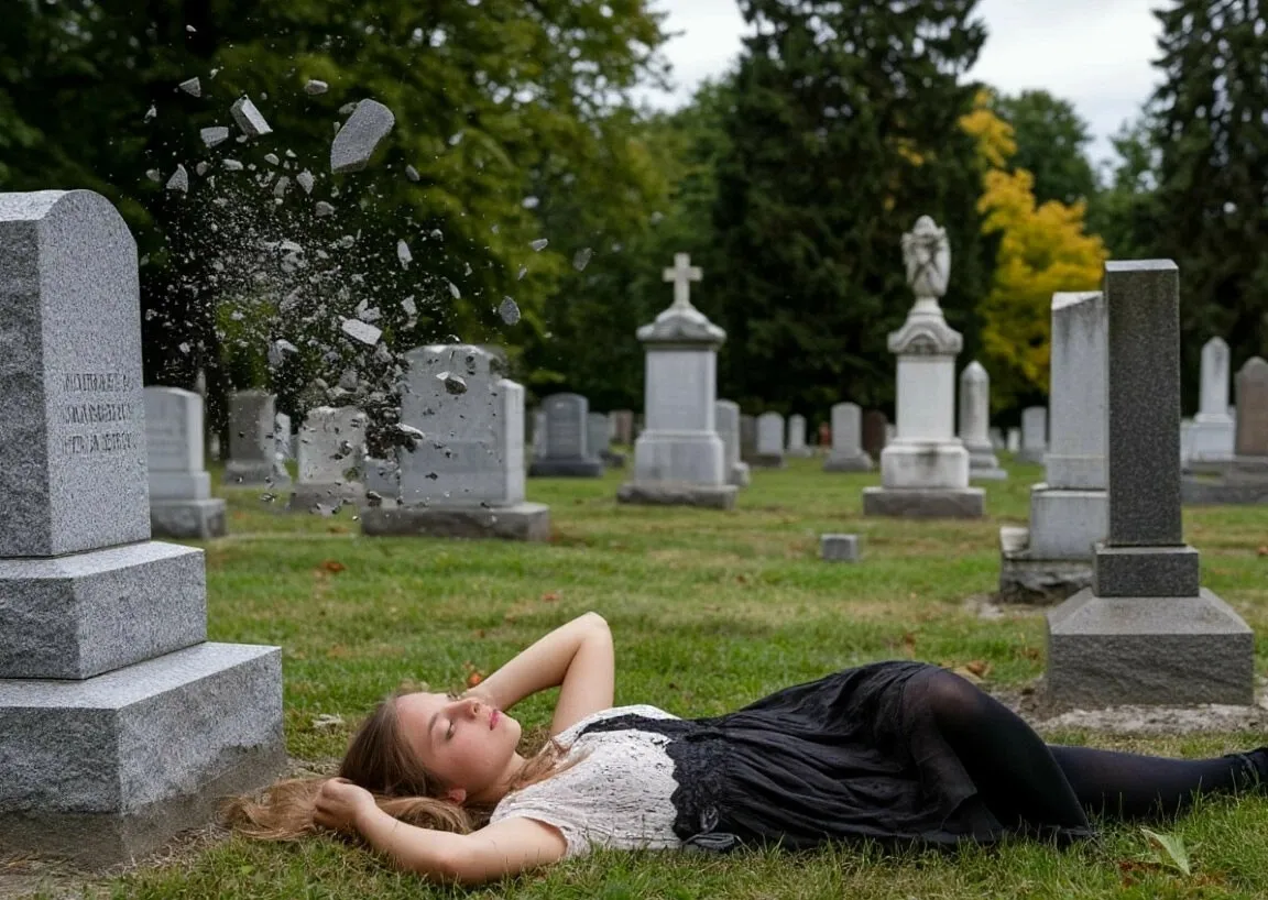 И тут же третий удар сотряс памятник Виктора прямо над тем местом, где лежал Алексей. Осколок чёрного камня размером с кулак откололся от края плиты и полетел вниз по дуге прямо ему в лицо со скоростью пули.