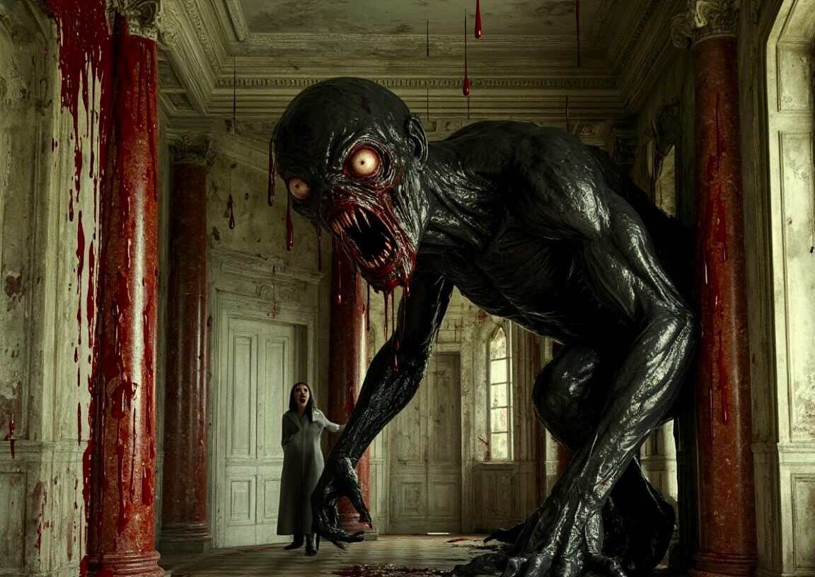 Стена была залита кровью. На ней, цепляясь чёрной, неестественно длинной рукой, висело нечто. Трёхметровое, с перекошенной маской вместо лица. В его пасти исчезала нога. Внутри, приглушённо, кричала Анна.