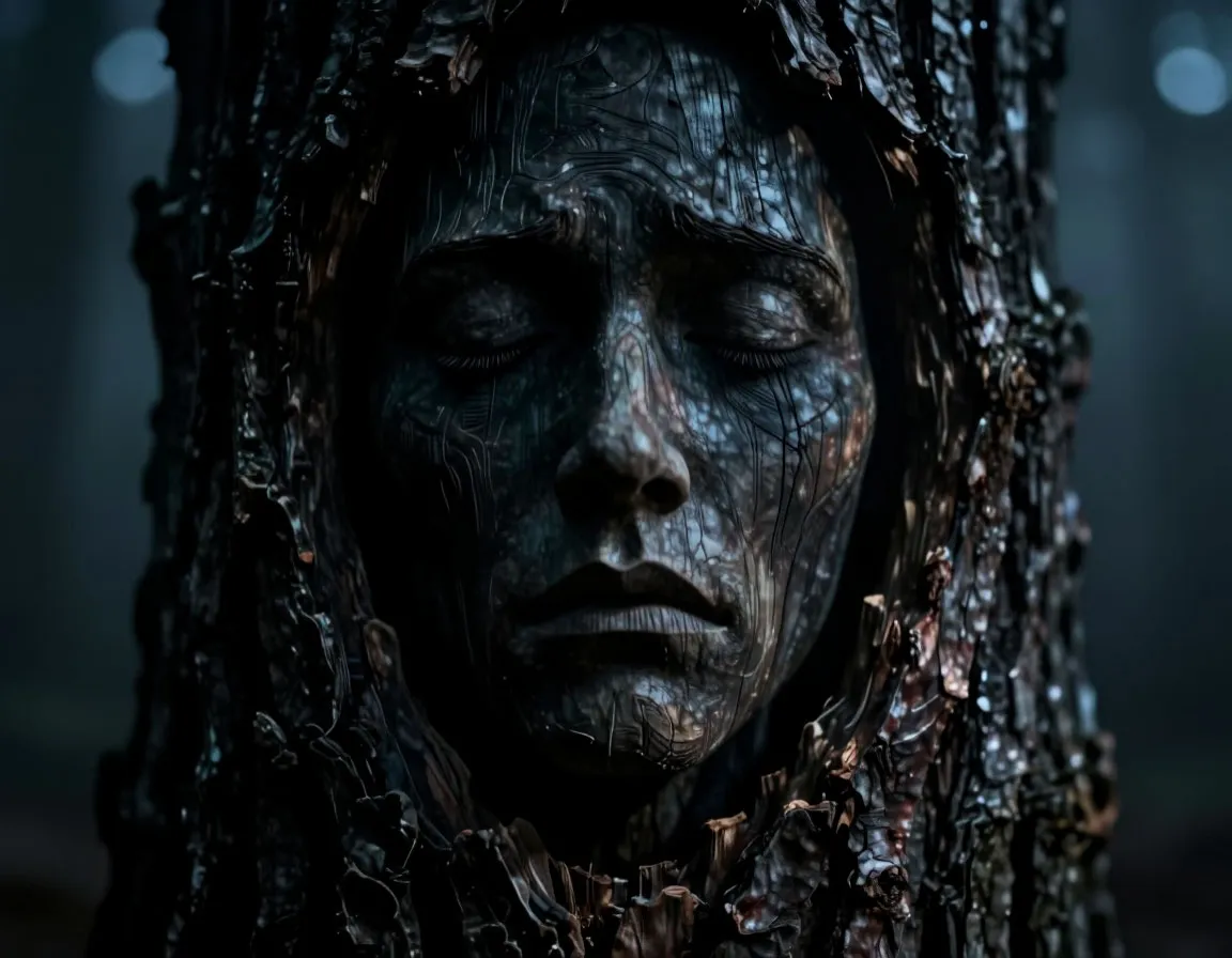 Девушка закричала и вскочила на ноги. Она бросилась догонять друзей, но краем глаза заметила движение. На коре дерева проступило её собственное лицо — искажённое ужасом и залитое слезами.
