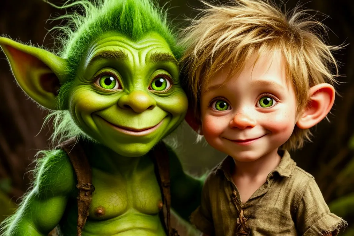 На следующий день, когда лесорубы с топорами и пилами подошли к краю леса, они увидели нечто удивительное. Перед ними стоял огромный, но удивительно красивый тролль, а рядом с ним – маленький мальчик. Тролль не выглядел угрожающе. Его глаза светились мудростью, а на лице играла добрая улыбка.