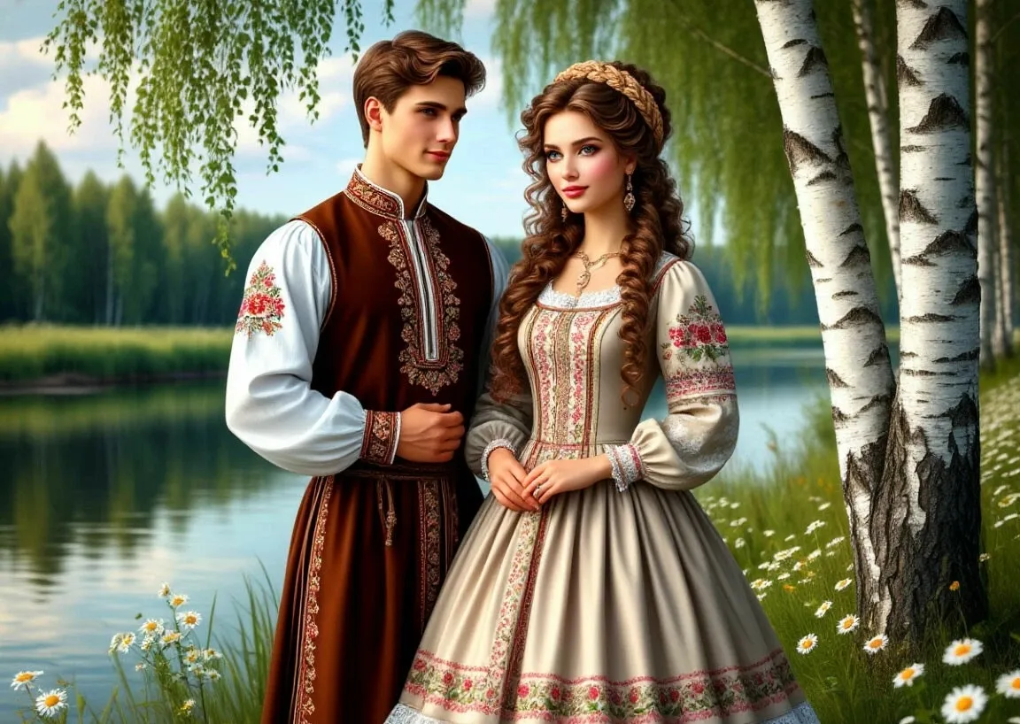 Жили-были в одном селе парень да девушка, Настя да Иван. Настя была красавицей писаной: коса русая до пояса, глаза синие, словно небо, а улыбка — как солнышко ясное. Иван же был добрым молодцем: статный, сильный, с добрым сердцем и ясным умом.