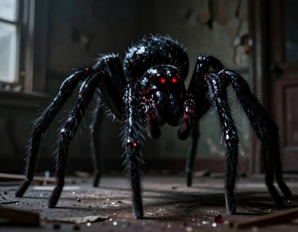 Из-под обвалившейся штукатурки выползло существо. Паук. Но не обычный — размером с тарелку, с чёрным блестящим телом, покрытым липкими волосками. Его восемь глаз сверкали, будто два ряда крошечных рубинов. А челюсти, изогнутые, как кинжалы, медленно раскрывались.