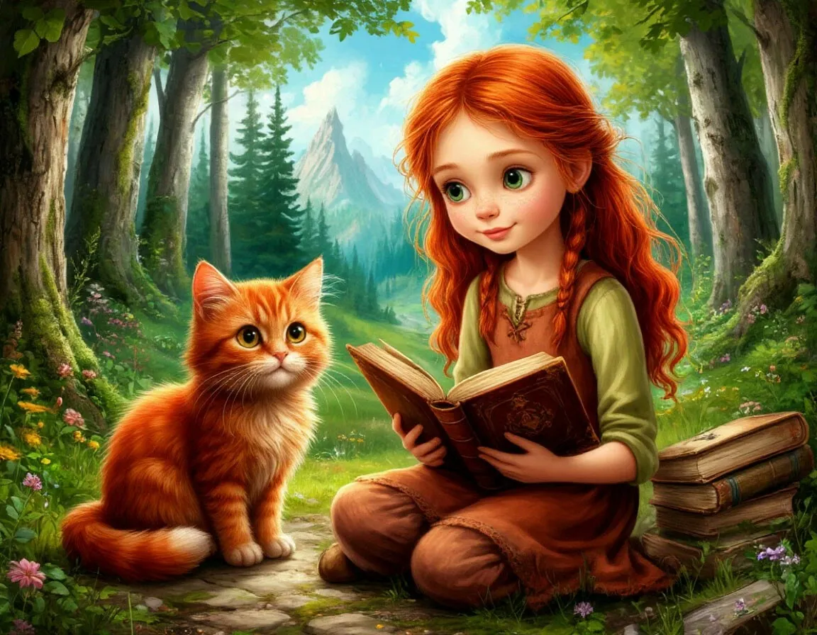Оля жила в маленьком городке, окружённом лесами. Ей было десять лет, она любила читать книги о приключениях и часто представляла, что сама попадает в волшебные страны. Её верным другом был рыжий кот Мурзик — ленивый, но очень преданный.