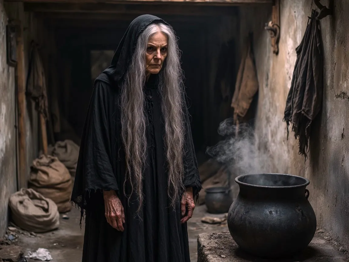 Внутри — пыль, паутина, разбитые окна. И посреди комнаты — старуха.