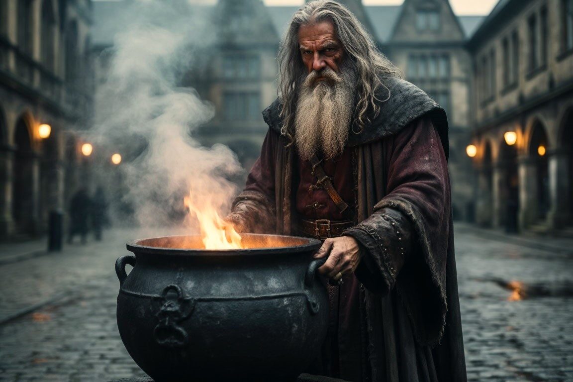 Колдун не ответил. Его глаза, пустые и стеклянные, смотрели куда‑то сквозь людей. Он лишь бормотал что‑то на непонятном языке, помешивая варево кривым посохом.