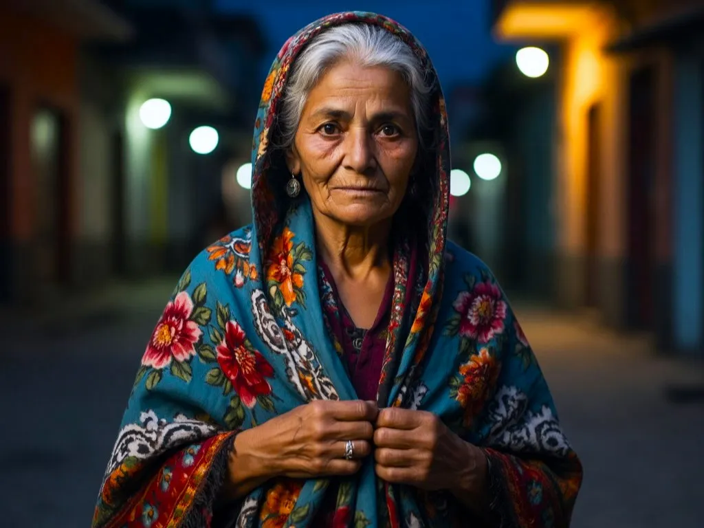 На пересечении Парковой и Зелёной улиц к ним приблизилась пожилая женщина в цветастом платке. Её глаза блестели в полумраке, а пальцы, унизанные перстнями, нервно перебирали край шали.