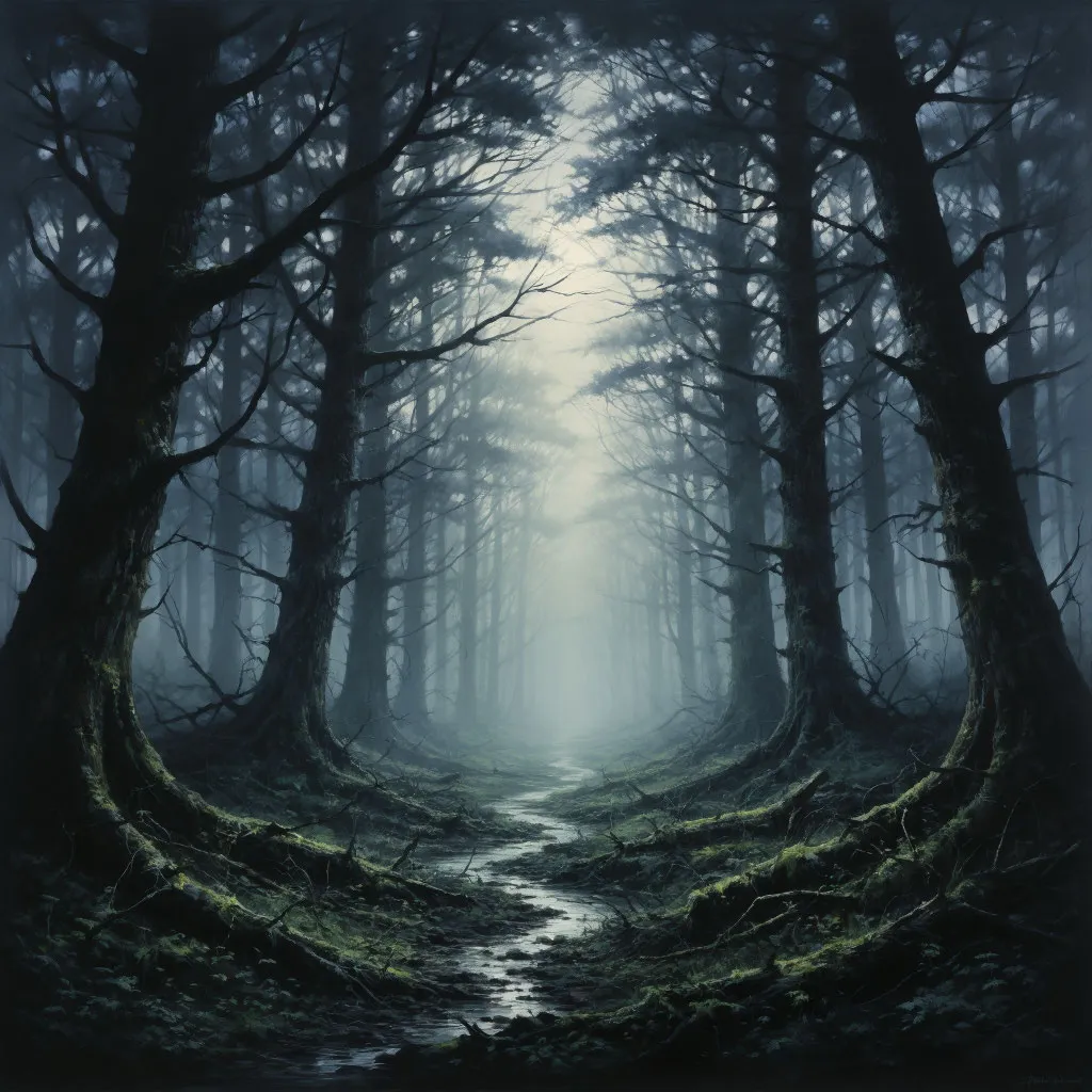 Он собрал рюкзак с фонарём, ножом и бутербродами, и на рассвете следующего дня шагнул под кроны деревьев. Лес был густым, с корявыми стволами, обвитыми плющом, и воздухом, пропитанным запахом гнили. Птицы не пели, только иногда хрустели ветки под ногами. Карта вела его глубже: мимо ручья с чёрной водой, через поляну с странными камнями, похожими на могилы. Через пару часов он вышел к заброшенному дому — или тому, что от него осталось. Это была старая усадьба, покосившаяся, с провалившейся крышей и окнами, зияющими как пустые глазницы. Двери были приоткрыты, приглашая войти.