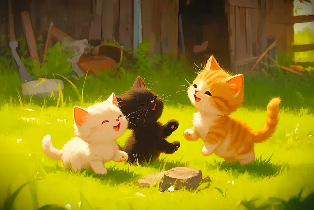 Их дни были полны игр и открытий. Они гонялись за солнечными зайчиками, которые танцевали на стенах сарая, устраивали засады на шуршащие листья, которые ветер приносил с улицы, и исследовали каждый уголок своего маленького мира.