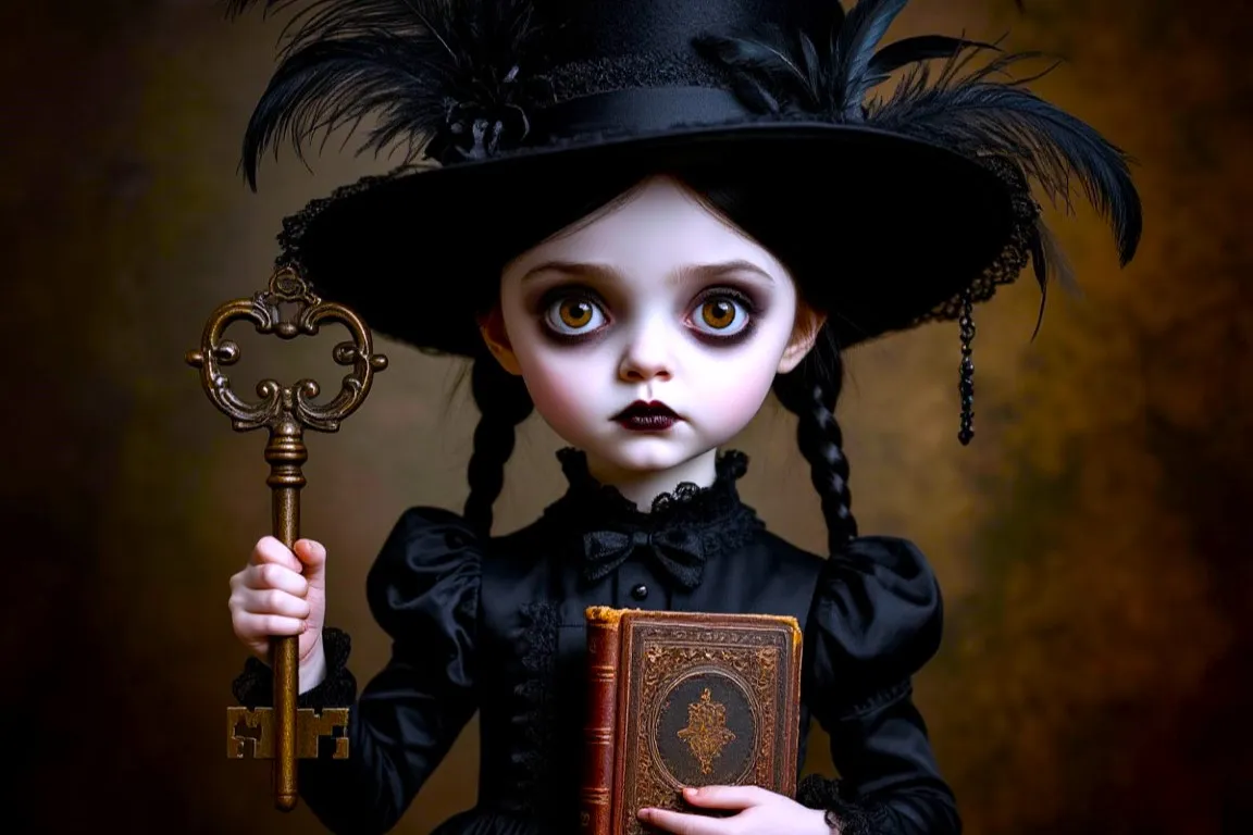В этот момент, дверь квартиры распахнулась, и на пороге появилась Уэнздей. Она была одета в свое обычное черное платье, но ее лицо было бледнее обычного, а глаза казались еще более глубокими и темными. В ее руках она держала небольшой, старинный ключ.