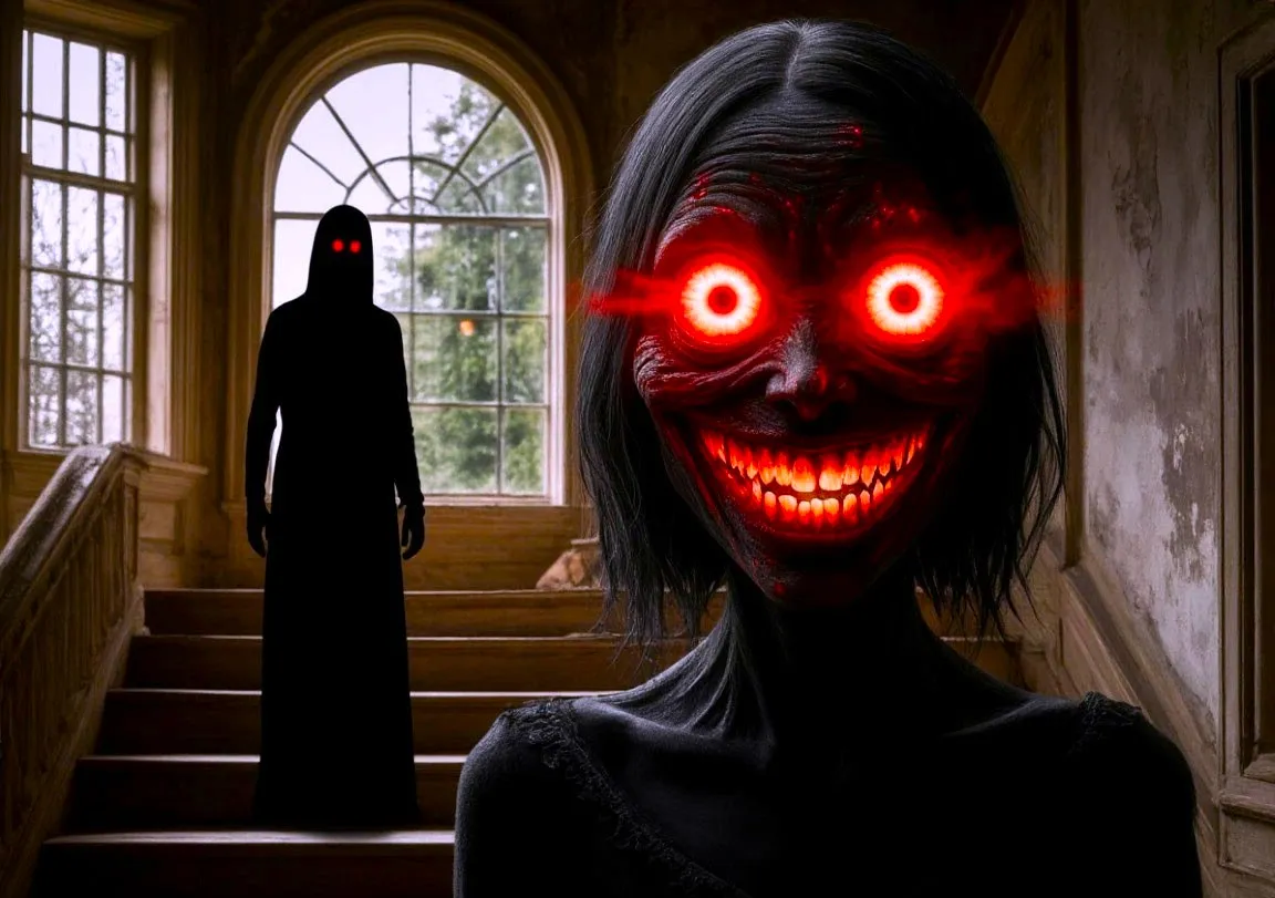 У неё не было лица — только два огромных красных глаза, горящих, как угли, и широкая, слишком широкая улыбка, растянутая от уха до уха.
