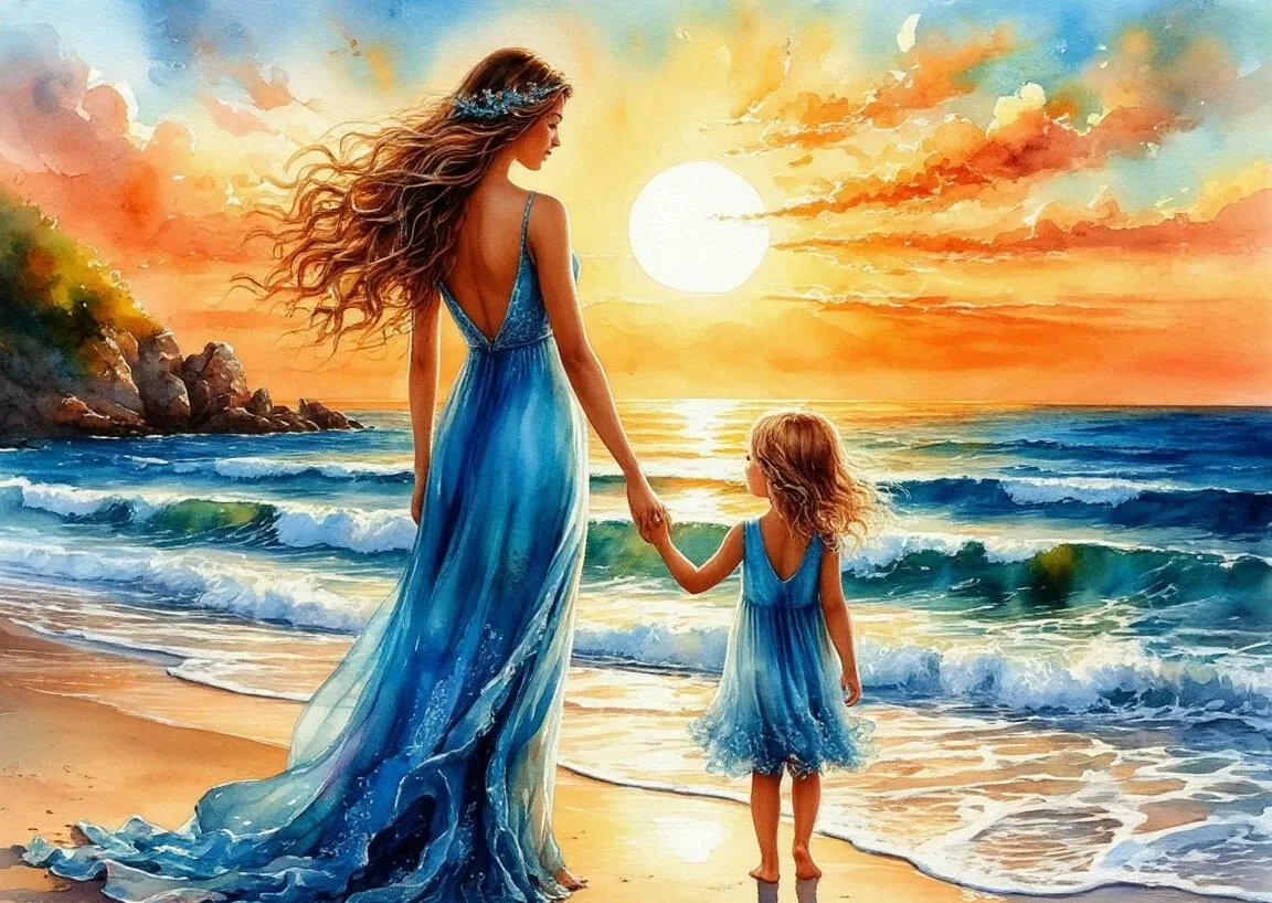 Анна стояла на берегу моря, вдыхая солёный воздух. Волны шумели, как тогда, много лет назад, когда мама вела её за руку по песку. Она закрыла глаза, чувствуя, как ветер играет волосами.
