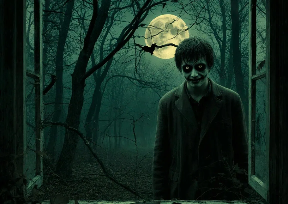 За стеклом, в свете луны, стоял Денис. Его глаза были чёрными. Он улыбался.