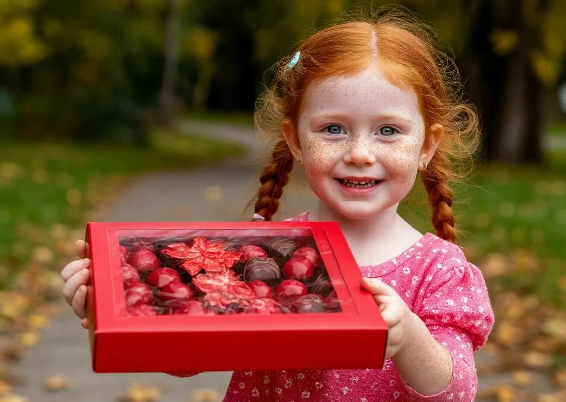Лена, восьмилетняя девочка с косичками и веснушками, бежала домой из школы, сжимая в руке подарок от бабушки — яркую коробку шоколадных конфет. Бабушка всегда присылала их по выходным, и Лена знала, что внутри будет её любимая — с вишнёвой начинкой, завёрнутая в блестящую красную фольгу.
