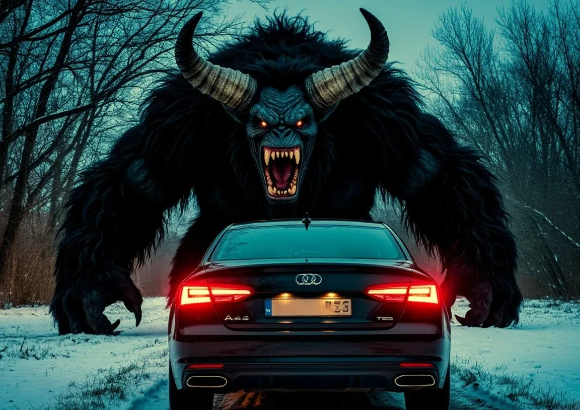 Утром охотники нашли седан. Внутри — никого. На снегу — только следы, ведущие в лес. И ещё — странные чёрные пятна там, где снег растаял, будто его облили чем‑то горячим.